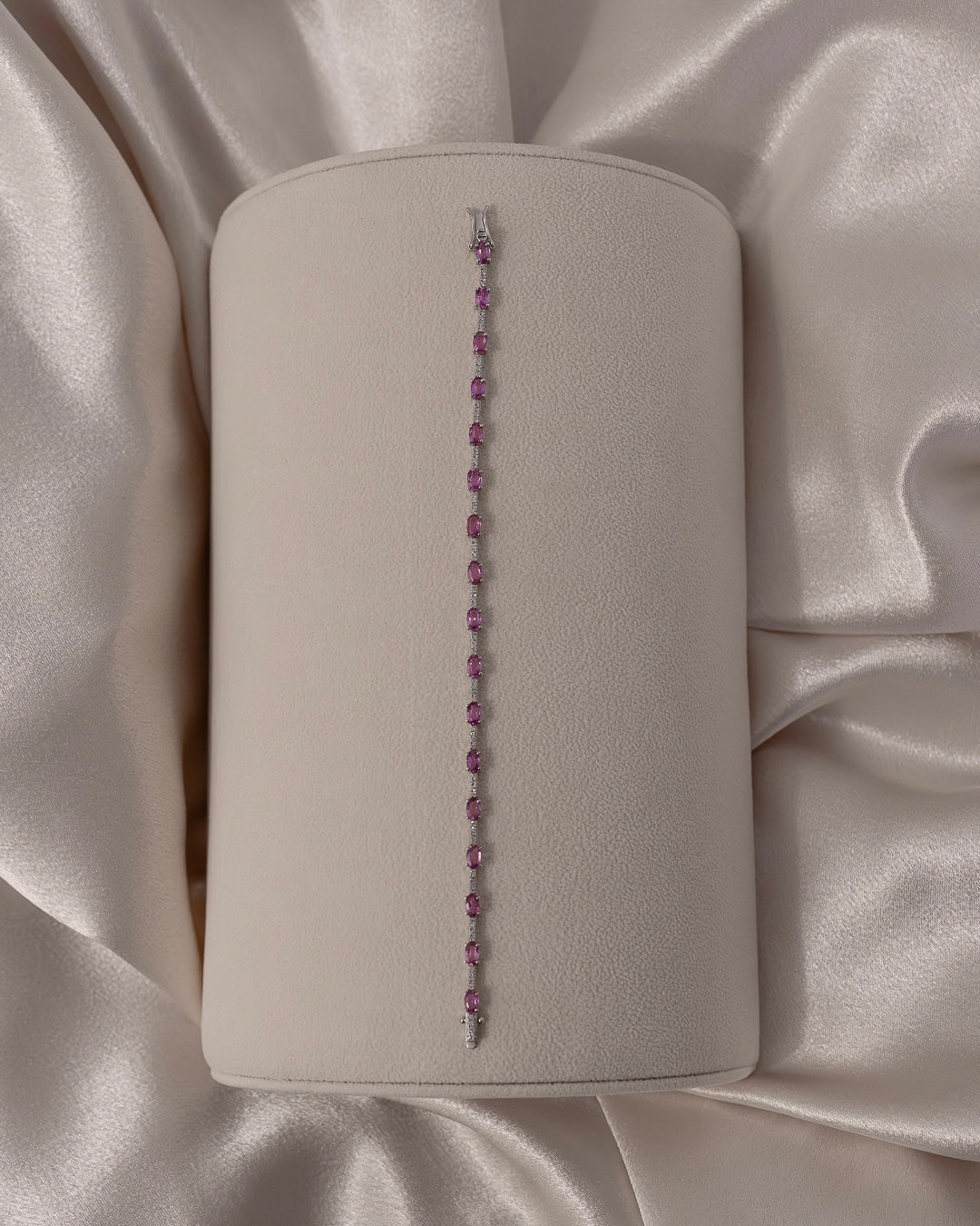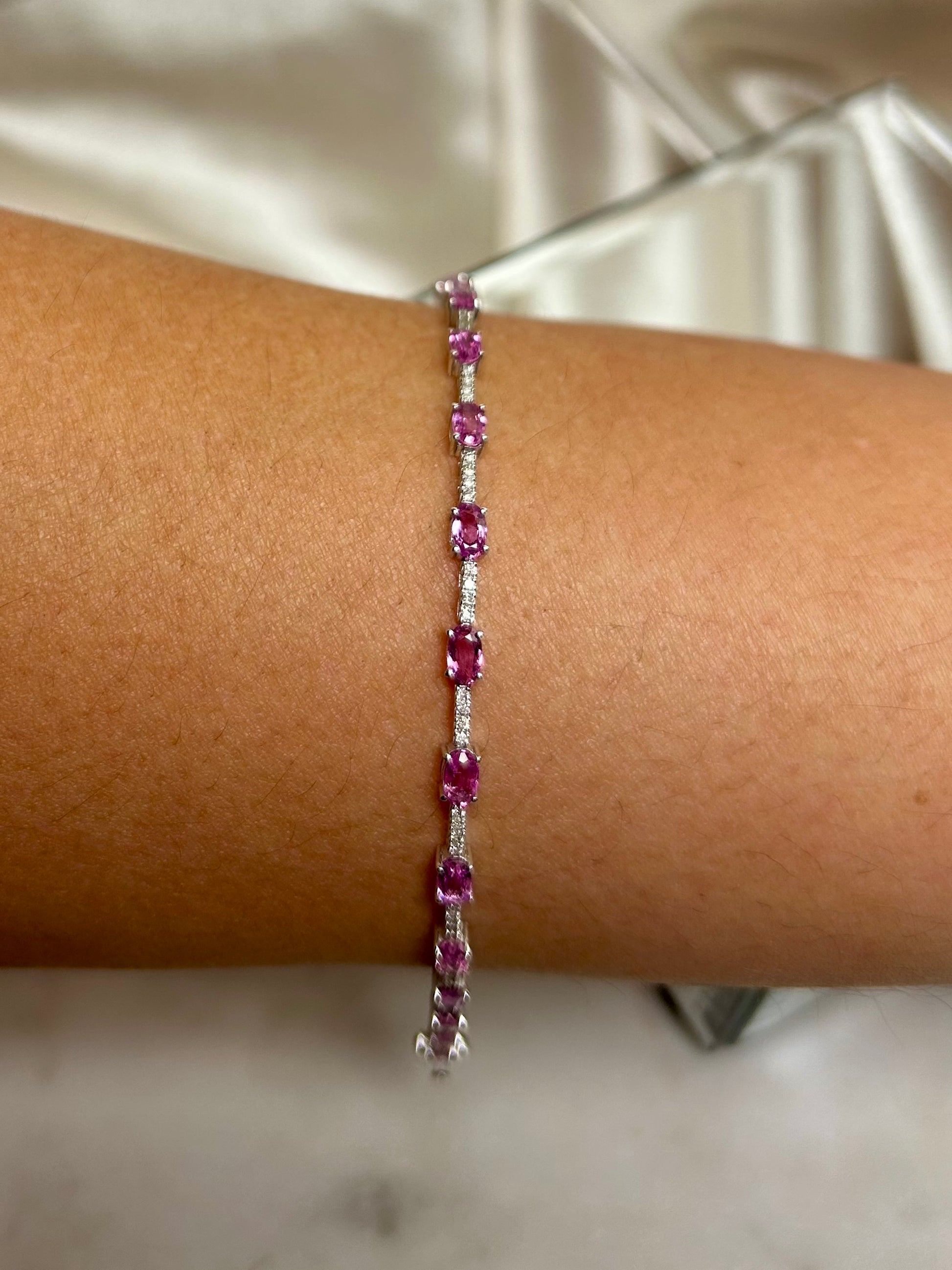 Diamond and Pink Sapphire Bracelet set in 14k White Gold | Size 7in