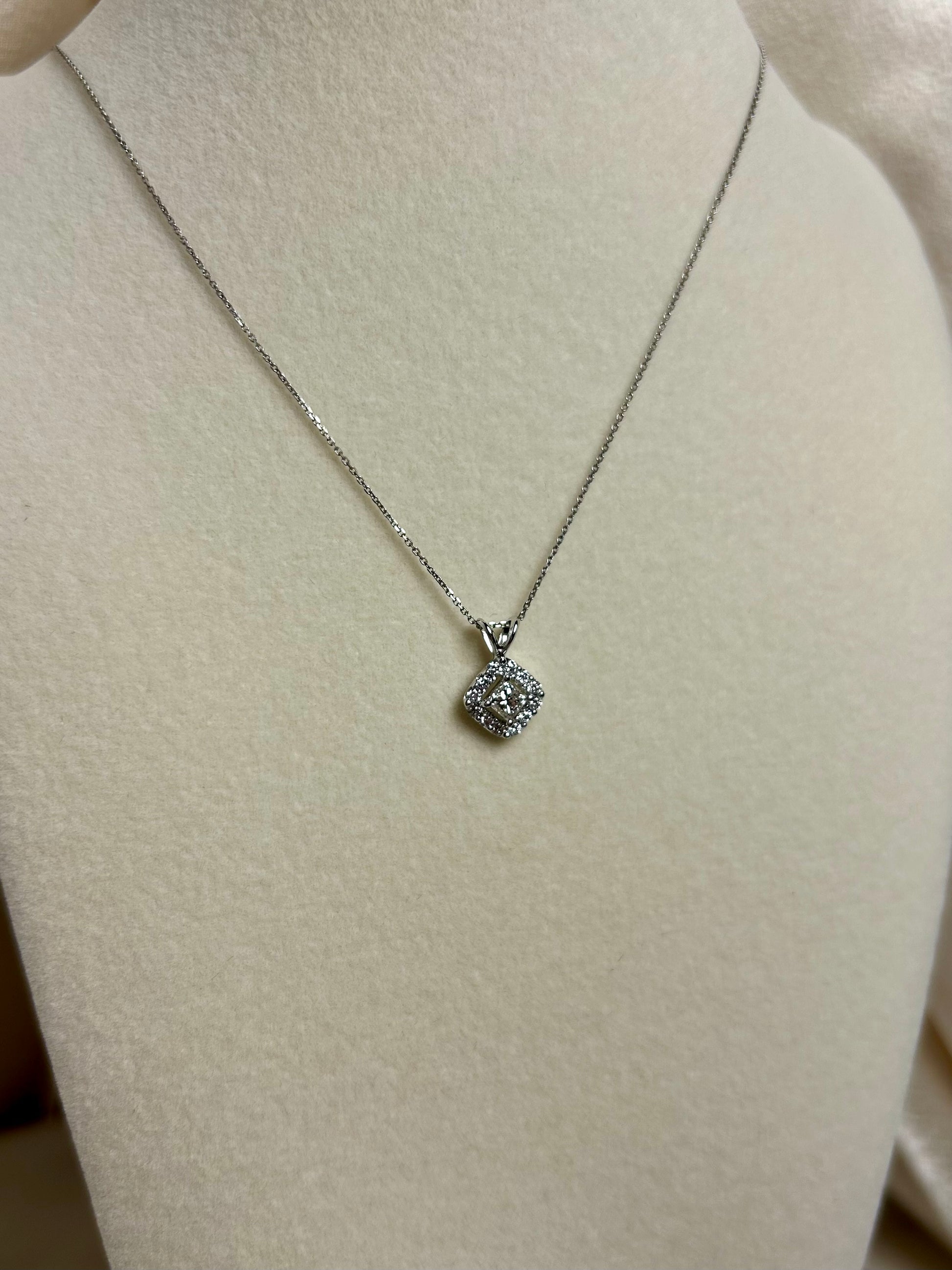Princess Cut Diamond Pendant with Diamond Halo set in 14k White Gold